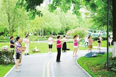 “现在城市绿化打造得像花园一样,公共健身场所和器材越来越多、越来越完善,只要自己想,天天都是健身日。” 刚跑完步的刘先生一边擦拭额头的汗珠,一边笑意盈盈地说。